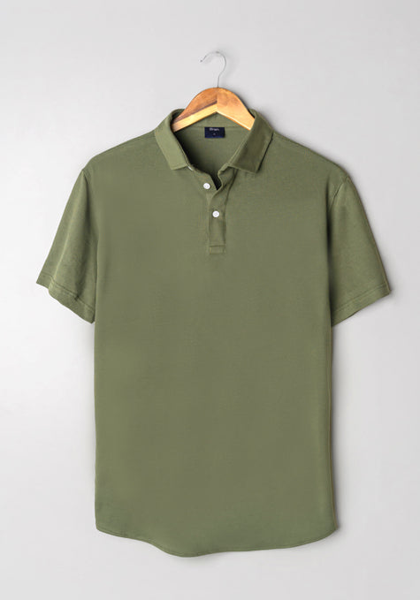Military Green Feather Soft Piqué Half Sleeve Polo Shirt