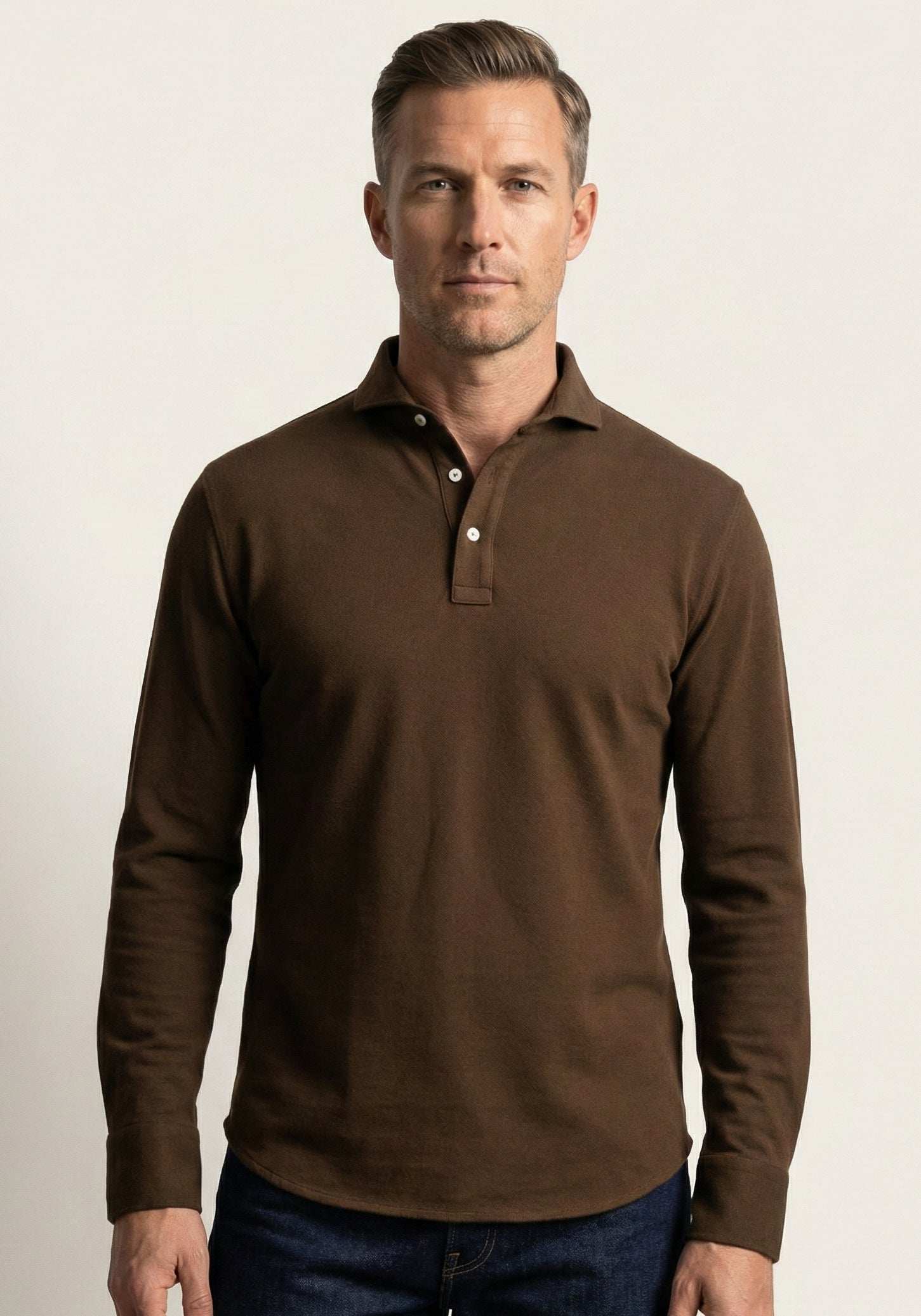 Brown Feather Soft Piqué Full Sleeve Polo Shirt
