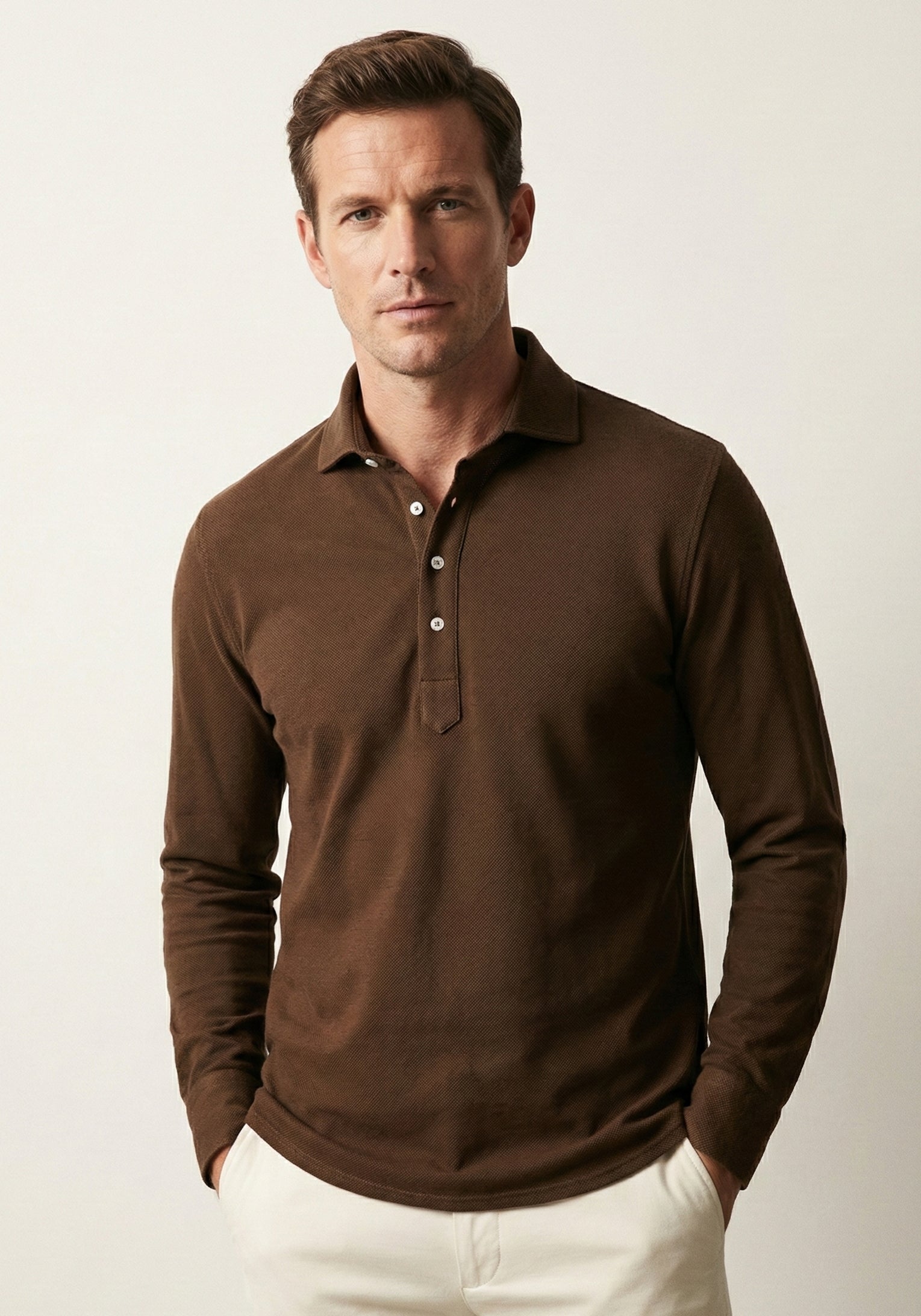 Brown Feather Soft Piqué Popover Full Sleeve Polo Shirt